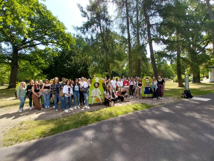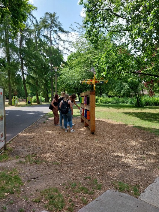 Im Stadtpark angekommen, hat Frau Trettner einen kurzen Vortrag über die Straße der Kinderrechte im Stadtpark Nürnberg und deren Entstehung sowie zu den einzelnen Stationen gehalten. Im Anschluss hatten die Studierenden die Möglichkeit, die Stationen ganzheitlich mit allen Sinnen zu erkunden. Im Anschluss reflektierten die Studierenden die Umsetzung dieser Exkursion mit Kindergartenkindern und diskutierten über die Wichtigkeit von Partizipation und Projektarbeit im pädagogischen Alltag.