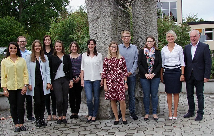 Im Schuljahr 2018/19 unterstützt die Studienreferendarin im Zweigschuleinsatz Janina Stellwagen (Sozialpädagogik und Sozialkunde) das Kollegium. Die Studienreferendare Anja Ahmadi, Katharina Bausewein, Agnes Hölzler, Martina Lassner, Christoph Stanzel, Nadja Stengel und Sandra Zick mit dem Hauptfach Sozialpädagogik und den Unterrichtsfächern Sozialkunde und Katholische Religionslehre starten am BSZ den Vorbereitungsdienst. Sie werden von der neuen Seminarlehrerin Oberstudienrätin Evelin Tretter (Zweite von rechts) beim Übergang von der Universität in den Berufsalltag an der Schule begleitet.