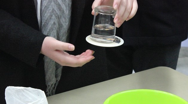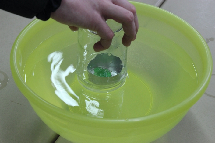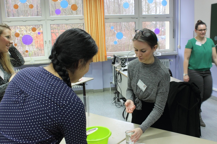 | Sehr beeindruckt waren die potentiellen zukünftigen KinderpflegerInnen von „Franz, dem Tiefseetaucher“. Bei diesem Versuch wird Kindern gezeigt, dass es Luft gibt. |