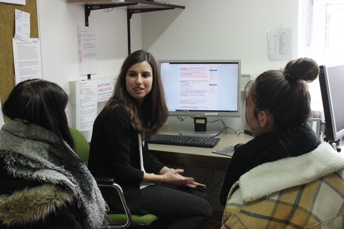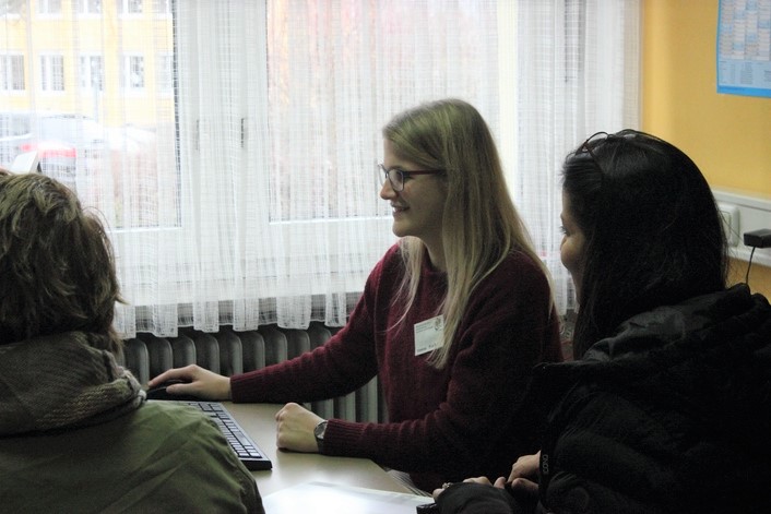 | Bei den Anträgen der Bustickets halfen den angehenden SchülerInnen zwei charmante Referendarinnen. | |