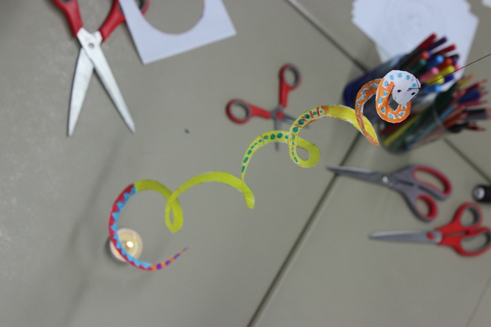 Die Kreativität war besonders bei der „Tanzenden Kobra“ gefragt, die zuerst gestaltet werden durfte, bevor die Besucher sie tanzen ließen. Damit wird für Kinder deutlich, dass warme Luft nach oben steigt.