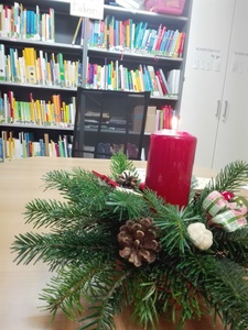 Dank Herrn Hamms Mutter ging uns in der Seminarsitzung sprichwörtlich auch ein Licht auf – ein hübsch dekoriertes und mit Liebe gestaltetes Adventsgesteck bescherte uns während der weihnachtlichen Seminarsitzungen eine tolle Atmosphäre.