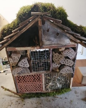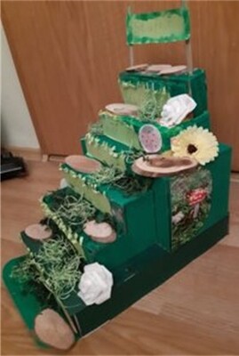 Bienenhotels, einer eigenen Seifenproduktion, einem Stufenplan zum spielerischen Erlernen des Gemüseanbaus, einer Bildertour durch lokale Unverpacktläden, aber auch ein selbstgebauter Müllroboter war Teil der kreativen Arbeit. Das Engagement der Schüler/innen ging weit über dieses Projekt hinaus und viele planen die kreativen Entwürfe und Ideen in ihrer späteren Praxis umzusetzen und somit ihrer Bildungsaufgabe als angehende Kinderpfleger/innen kreativ, spielerisch und vor allem nachhaltig gerecht zu werden.