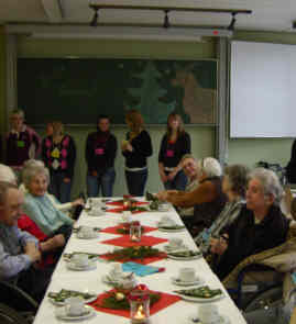 | Als Überraschung erschien am Ende der Veranstaltung der Nikolaus und überreichte den Senioren selbst gebackene Lebkuchenengel und mit einem gemeinsamen Lied ließ man diesen Tag ausklingen. Für die Schüler und Schülerinnen waren die anerkennenden Worte der Senioren die beste Belohnung für ihren großen Einsatz.