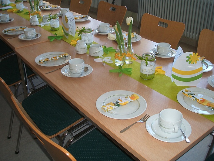Sie gestalteten die Einladung für die Senioren vom Familiär Betreuten Wohnen in Altenstadt, wählten eine passende Tischdekoration aus, stellten ein vielseitiges Kuchenbüfett zusammen und überlegten sich den Programmablauf. |