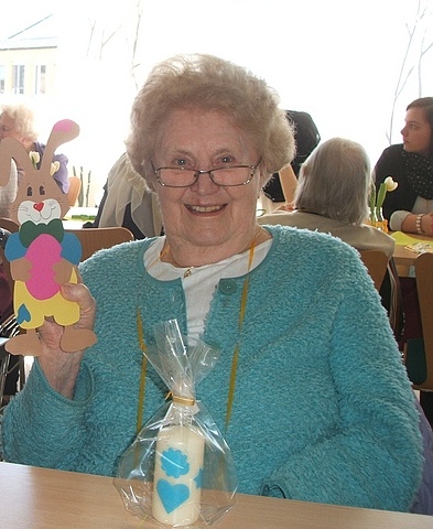 Die Schülerinnen überreichten den Senioren noch ein selbst gefertigtes Fensterbild, das sie auf die Osterzeit einstimmen sollte. |