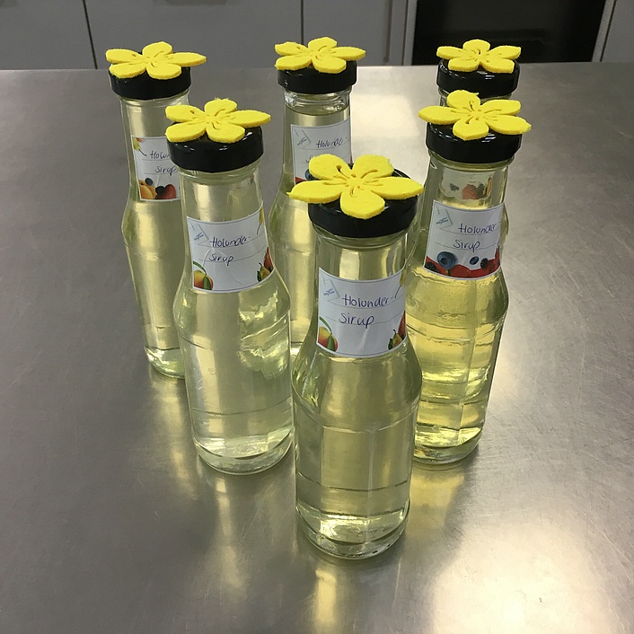 Nicht fehlen durften bei den Geschenkideen auch selbst gemachte Sirupe und Pestos. So standen auf dem Programm auch ein Holunder-Sirup, ein Erdbeer-Rhabarber-Sirup oder ein Petersilien-Mandel-Pesto. |