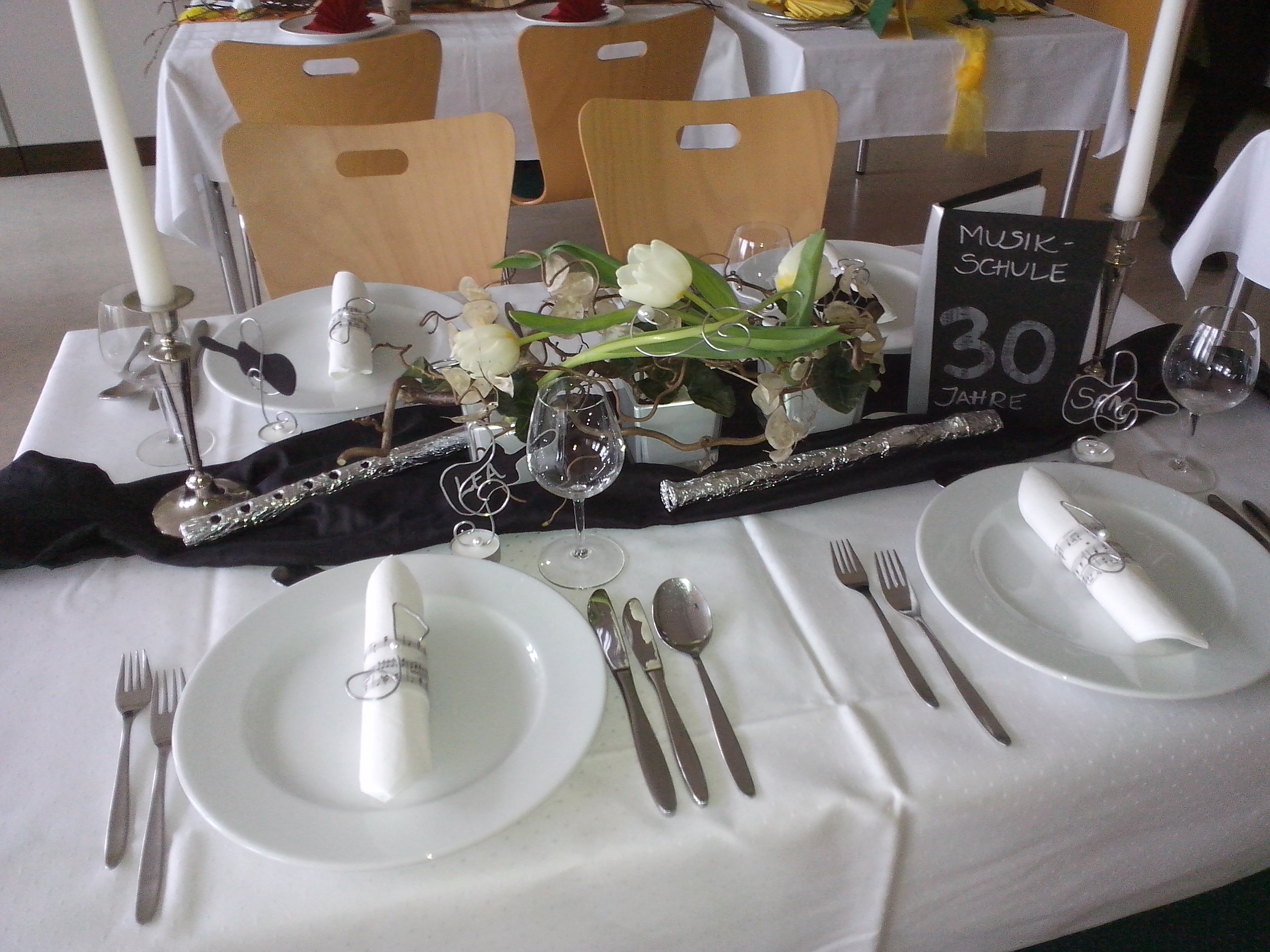 Ganz besonders wichtig war eine ausgefallene Idee für die Dekoration. Gewünscht wurden passender Blumenschmuck, Menükarte, Tischkarten, Tischbänder und natürlich zum Thema und zur Person passendes Beiwerk.