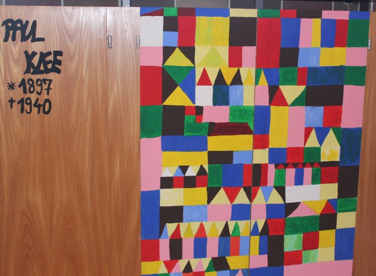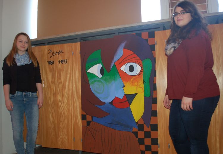 Studierende der Fachakademie für Sozialpädagogik verschönerten im Rahmen des Faches Kunst- und Werkpädagogik Wände und Garderobentüren vor ihrem Klassenzimmer. Mit ihrer Lehrerin Gertrud Werner suchten sie Bilder von Picasso, Henry Rousseau, Rizzi, Haring und Klee aus.