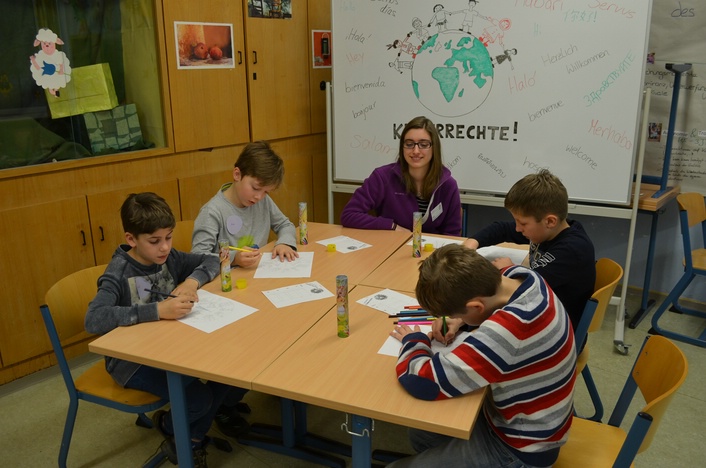 Die Studierenden waren sehr begeistert von der schnellen Auffassungsfähigkeit der Kinder. Sie konnten blitzschnell einen Zusammenhang zu den Kinderrechten herstellen und die gestellten Fragen beantworten.