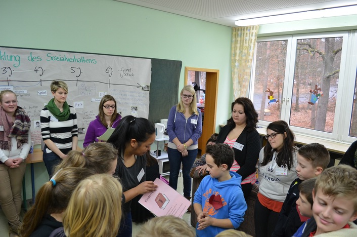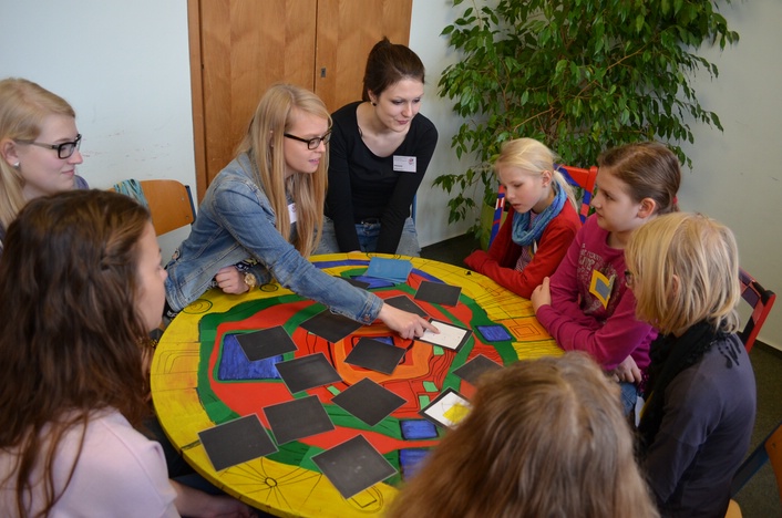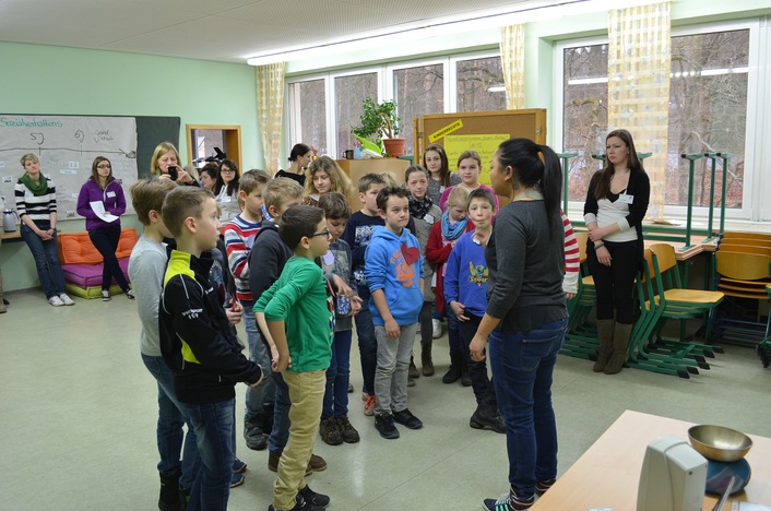 Eingestimmt durch einen kurzweiligen Film, machten sich die Kleingruppen unter der Begleitung einer Studentin auf, die Stationen zu durchlaufen. Diese wurden jeweils von zwei bis drei Studierenden betreut.