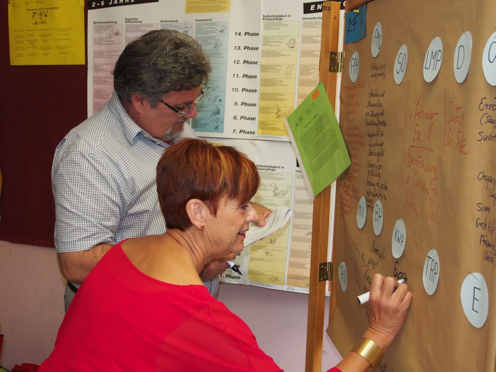 Im Zentrum stand zunächst die Auseinandersetzung mit den Kompetenzerwartungen der einzelnen Lernfelder. An vorbereiteten Stellwänden wurden anschließend die Inhalte der einzelnen Fächer von den betreffenden Lehrkräften visualisiert, diskutiert und optimiert, so dass es in Zukunft zu keinen thematischen Überschneidungen mehr kommen kann. Ebenso wurden die bisherigen Rahmen- und Lernsituationen intensiv betrachtet und überarbeitet. Hier zeigte sich besonders, wie wertvoll der intensive Erfahrungsaustausch zwischen den einzelnen Lehrkräften sein kann.