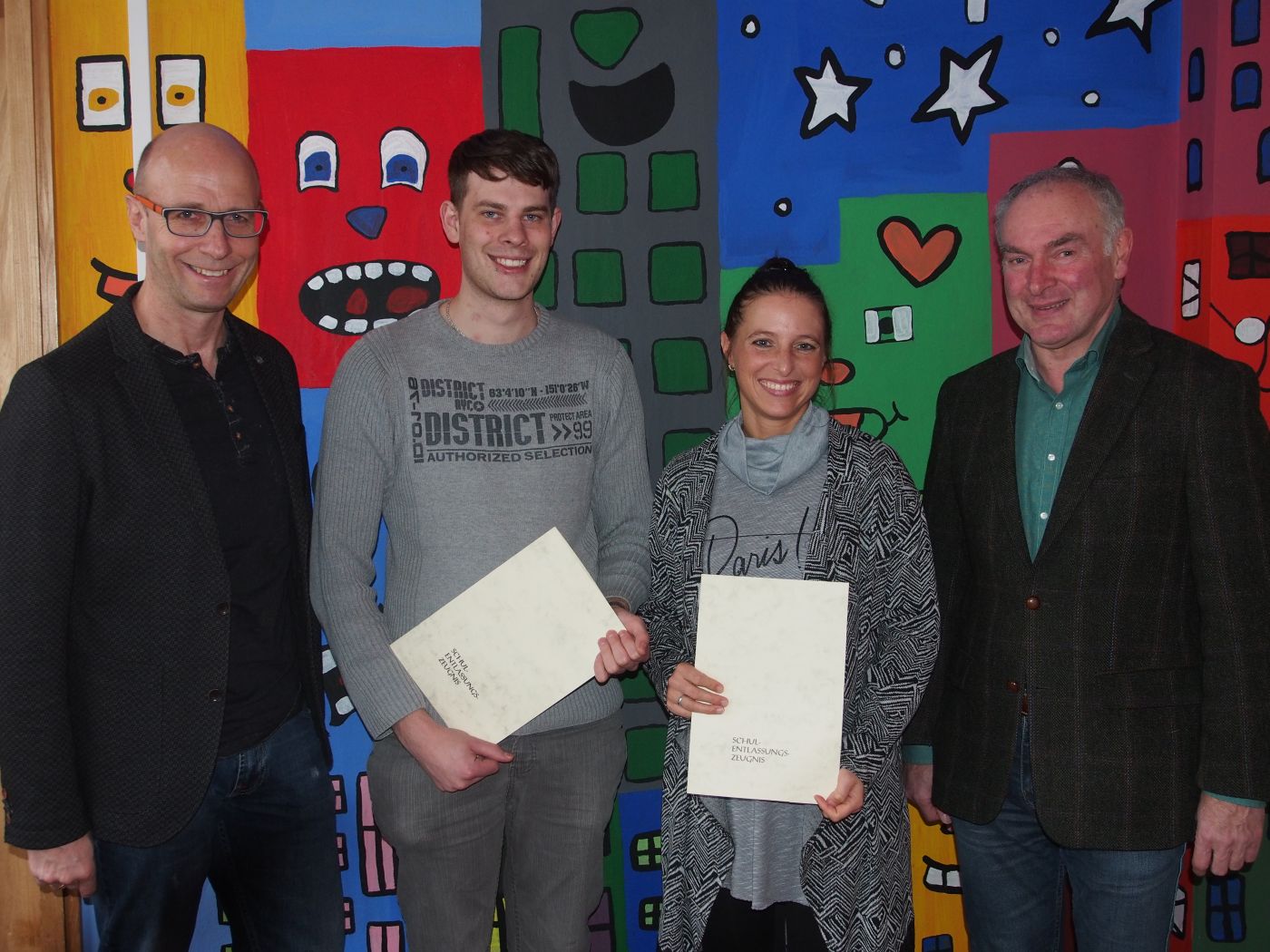 Schulleiter OStD Anton Dobmayer ließ es sich nicht nehmen Michaela Steinmüller und Markus Linsmeier die heiß begehrten Urkunden persönlich zu überreichen.