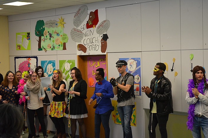 Studierende gaben leicht verständliche Informationen, warum sich Menschen in "merkwürdige Monturen" stecken, um ausgelassen mit viel Musik zu feiern.