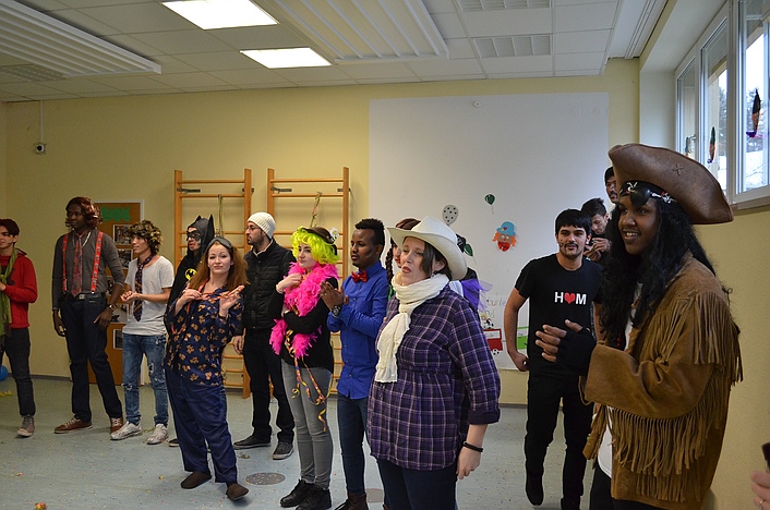 Ebenso wurden die Flüchtlinge in ihrem Unterricht auf Verkleidungsmöglichkeiten und Spielideen vorbereitet.