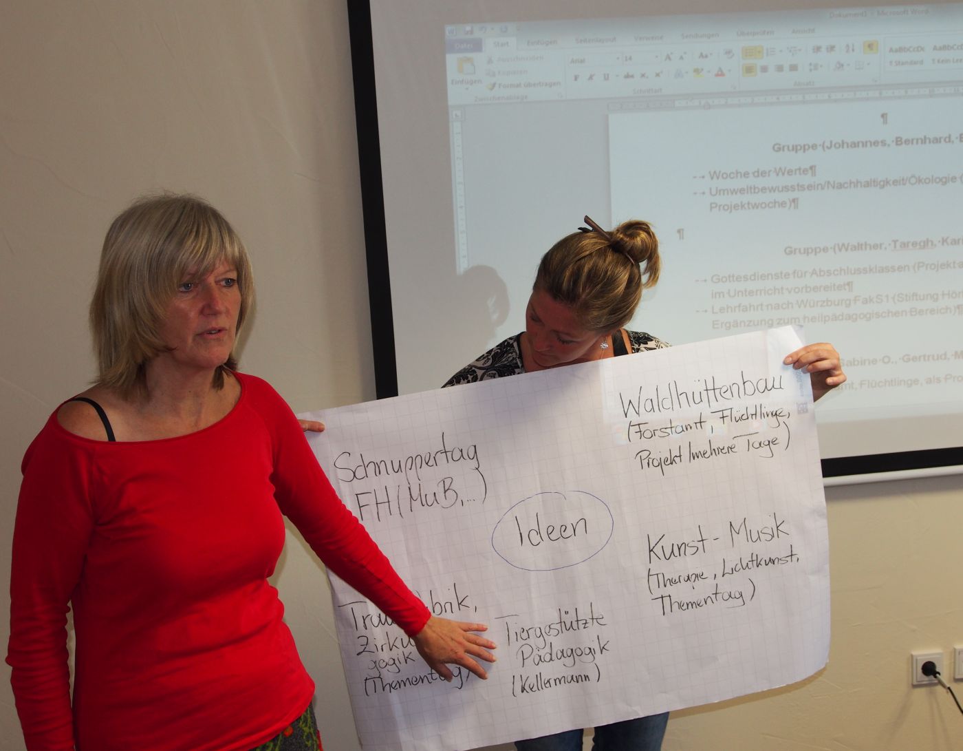 Die dort in Gruppen entwickelten Ideen wurden auf Plakaten präsentiert und dann im anschließenden Plenum dem Kollegium präsentiert.