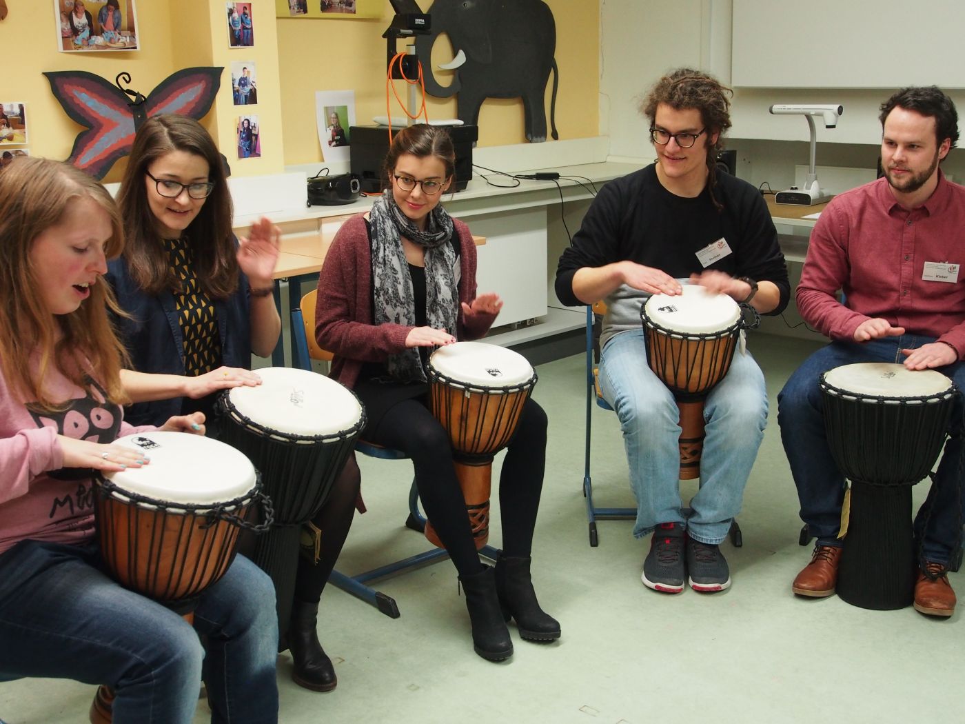 Ganz begeistert wurde das Angebot des Percussion-Circles von den Besuchern, aber auch von einigen Referendaren, aufgenommen. Auch die von Studierenden produzierte Filmsequenz zur Erzieherausbildung in Neustadt, die in youtube oder auf der Homepage des BSZ angesehen werden kann, wurde interessiert aufgenommen.