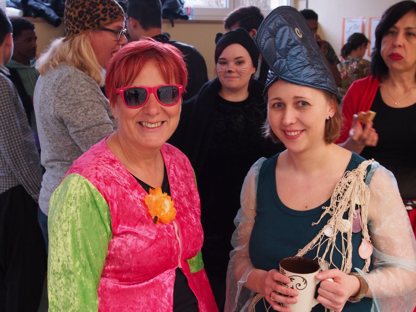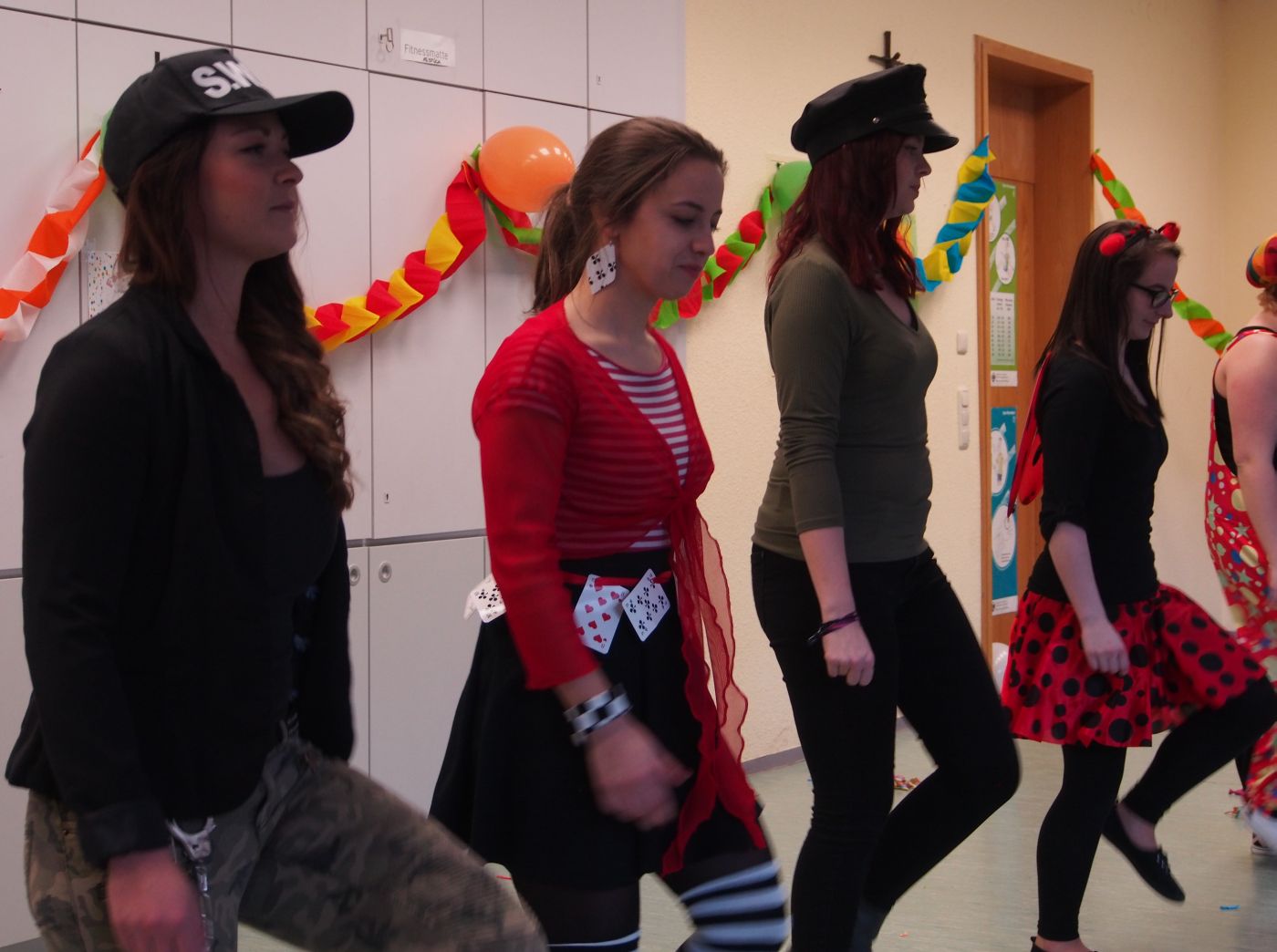 Mit einem „typisch europäischen“ Brauch – nämlich mit einer gemeinsamen Polonaise – wurden die BIK-Klassen unter den fetzigen Akkordeonklängen der Musiklehrerin Frau Lilia Gette von der FakS 2 begrüßt und in Windeseile tummelten sich Clowns, Seemänner und allerhand Tiere auf der Tanzfläche.