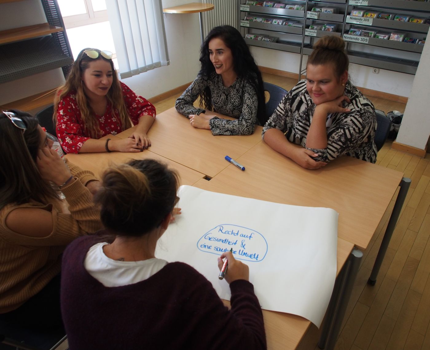 Nachdem das Team der Regionalbibliothek einen Raum für die Nachbesprechung zur Verfügung stellte, konnte die Lehrkraft Elke Kusche, die diese Veranstaltung initiiert hatte, mit den Studierenden noch lange über das Stück diskutieren. Die im Unterricht angedachte Umsetzung, sich weiter mit Kinderrechten auseinanderzusetzen, erfolgte noch an diesem Tag.