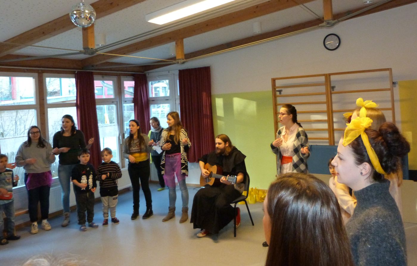 Nach einem ersten Besuch des AWO Kindergartens Regenbogenland in Altenstadt an der Waldnaab im Herbst 2017, bei dem die Studierenden der Fachakademie für Sozialpädagogik im Rahmen eines Praxisprojekts der Fachbereiche Musik- und Bewegungspädagogik eine Kleingruppe von Kindern mit einer Einheit zum Thema „Herbst“ zum Singen und Tanzen aufforderten, folgte ein zweiter Besuch in der Woche vor den Faschingsferien, den die Studierenden des 1. Studienjahres in Eigenregie planten und durchführten. Es war schnell klar, dass es jahreszeitlich passend eine Einheit zum Fasching werden sollte.