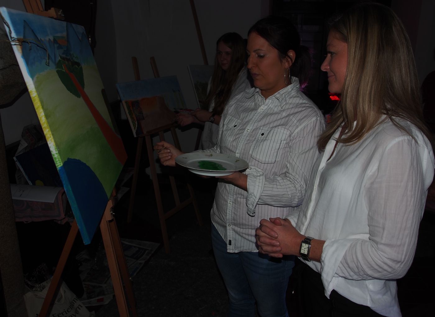 Im hinteren Bereich des Eingangsbereiches des Alten Rathauses hatten sich Studierende platziert, die sich beim Livepainting an zahlreichen Staffeleien mit ihren Pinseln und Farbpaletten tummelten. Luisa Bauernfeind aus dem ersten Studienjahr drückte es so aus: "Wir entwerfen vor den Besuchern Bilder, nehmen Ausschnitte von bekannten Werken und erweitern diese." In sehr dezentem Licht und in ruhiger Atmosphäre entstand so manches Kunstwerk, welches nicht wenige Besucher beeindruckte. Auch kamen die jungen Künstlerinnen so immer wieder ins Gespräch mit Interessierten.