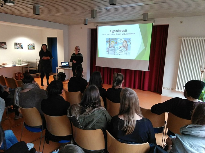 Sehr herzlich wurden die Studierenden von der pädagogischen Leitung Frau Eder empfangen und nach einer kurzen Verpflegung mit Kaffee und Weihnachtsgebäck erfolgte ein kurzweiliger Vortrag zur Praxis des Arbeitens mit Jugendlichen in stationären Einrichtungen.
