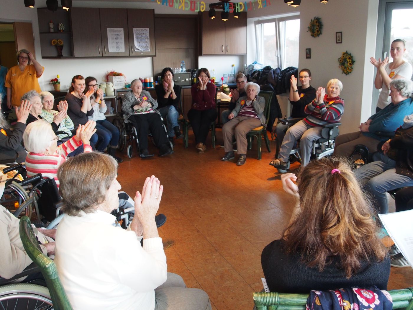 Zum Abschluss gestalteten die Studierenden zusammen mit den Bewohner eine Bewegungsaktivität, bei der jeder auf seine Weise sich einbringen konnte. Man konnte als Außenstehender deutlich sehen, mit welcher Begeisterung mitgemacht wurde.