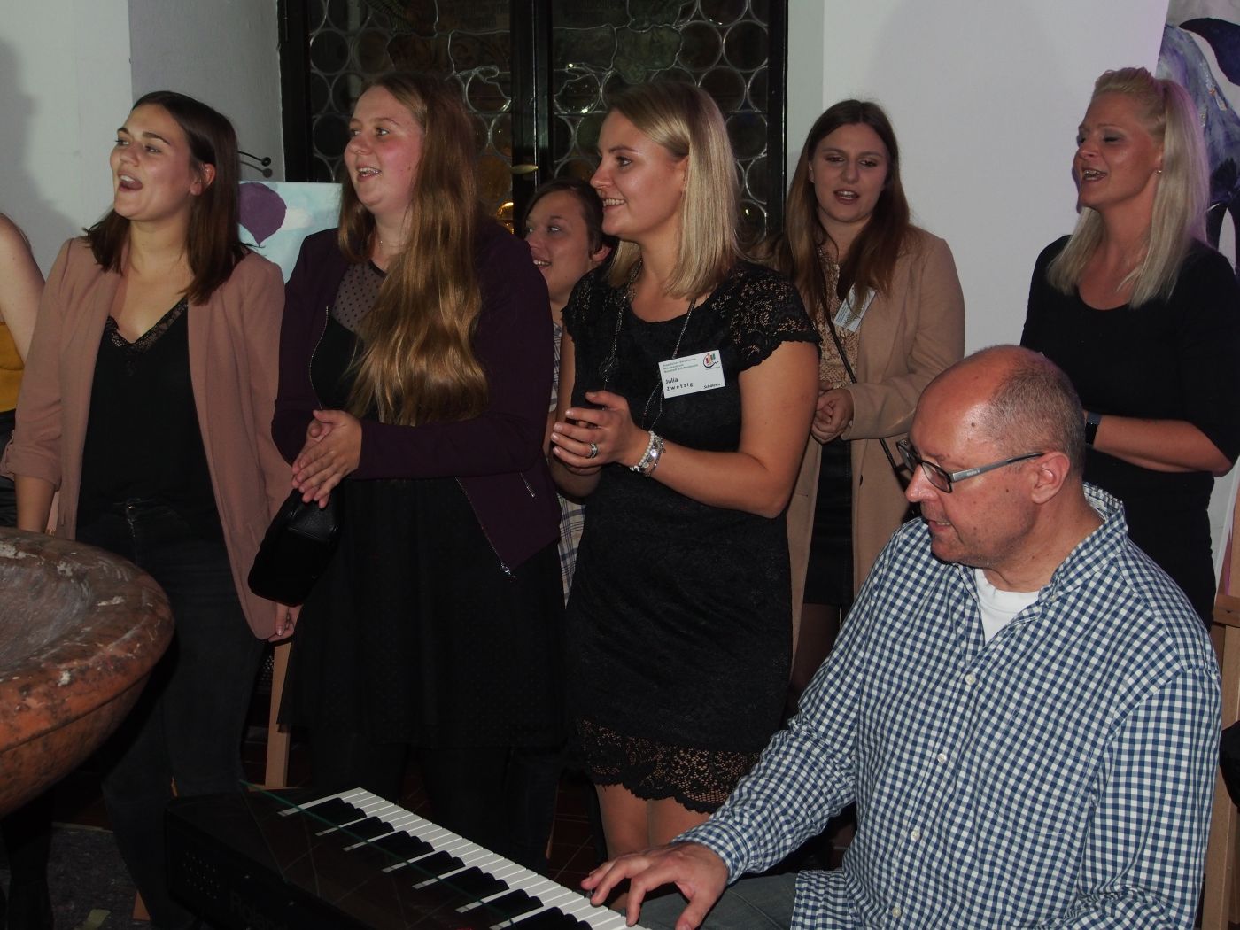 In den ehrwürdigen Räumen des Alten Rathauses zeigten die Studierenden der beiden Studienjahre ihr künstlerisches und musikalisches Geschick. Begleitet durch Kunst- und Werkpädagogin Sabine Sailer bewiesen einige angehende Erzieherinnen ihr Können beim Malen auf Leinwand. Sie ließen sich dabei von den vielen Besuchern über ihre künstlerische Schulter schauen. Bereitwillig standen sie auch für aufkommende Fragen zur Verfügung.