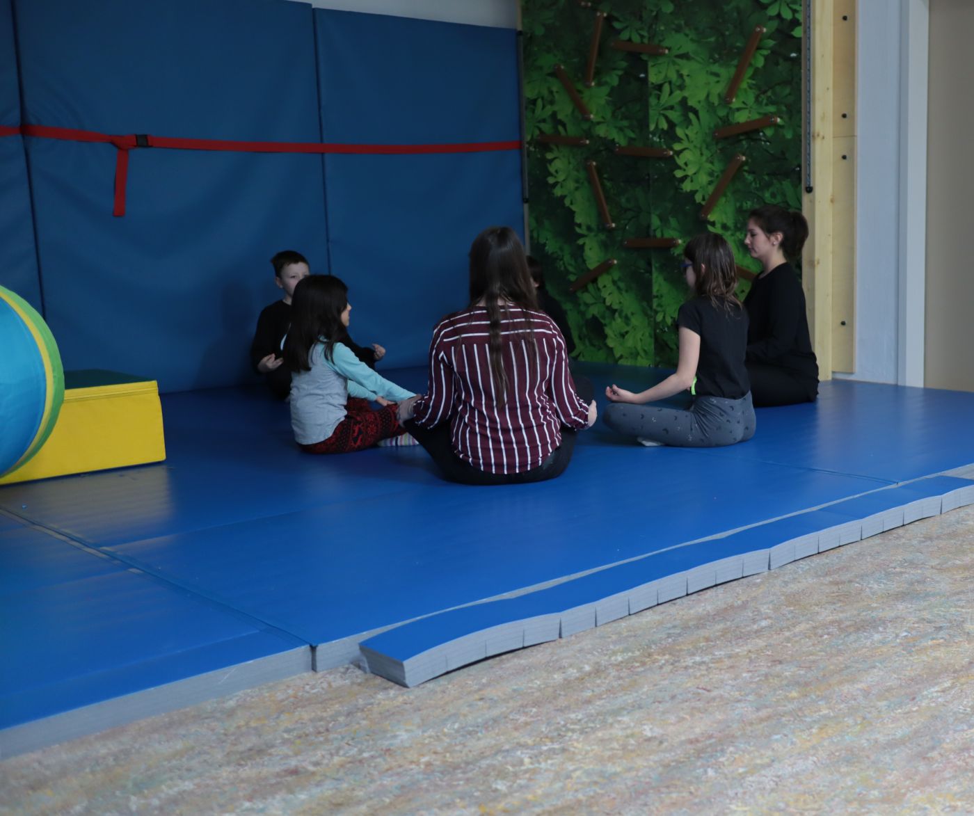 Konzentrationsfähigkeit und Körperspannung erprobten die Kinder beim Yoga-Workshop. Die Übungen wurden anhand von Figurenkärtchen besprochen und nachgeahmt.