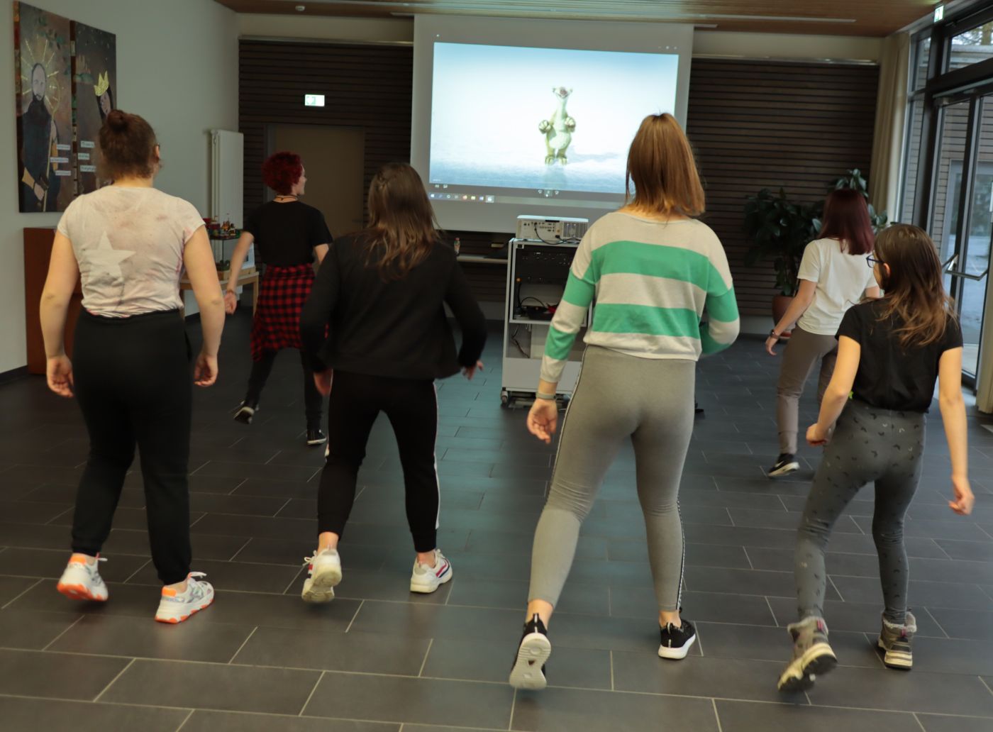Begeisterung löste der „Sid Shuffle“ aus, bei denen die Teilnehmer/-innen in die Rolle eines bekannten „Filmhelden“ schlüpften und mit Hilfe seiner Anweisungen spielerisch eine ansprechende Line-Dance-Choreografie performten.