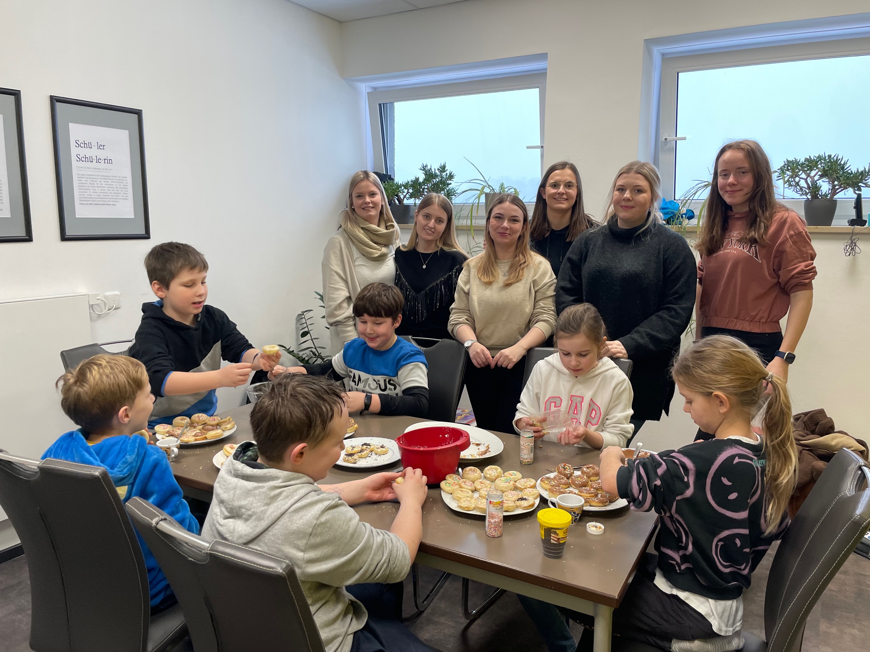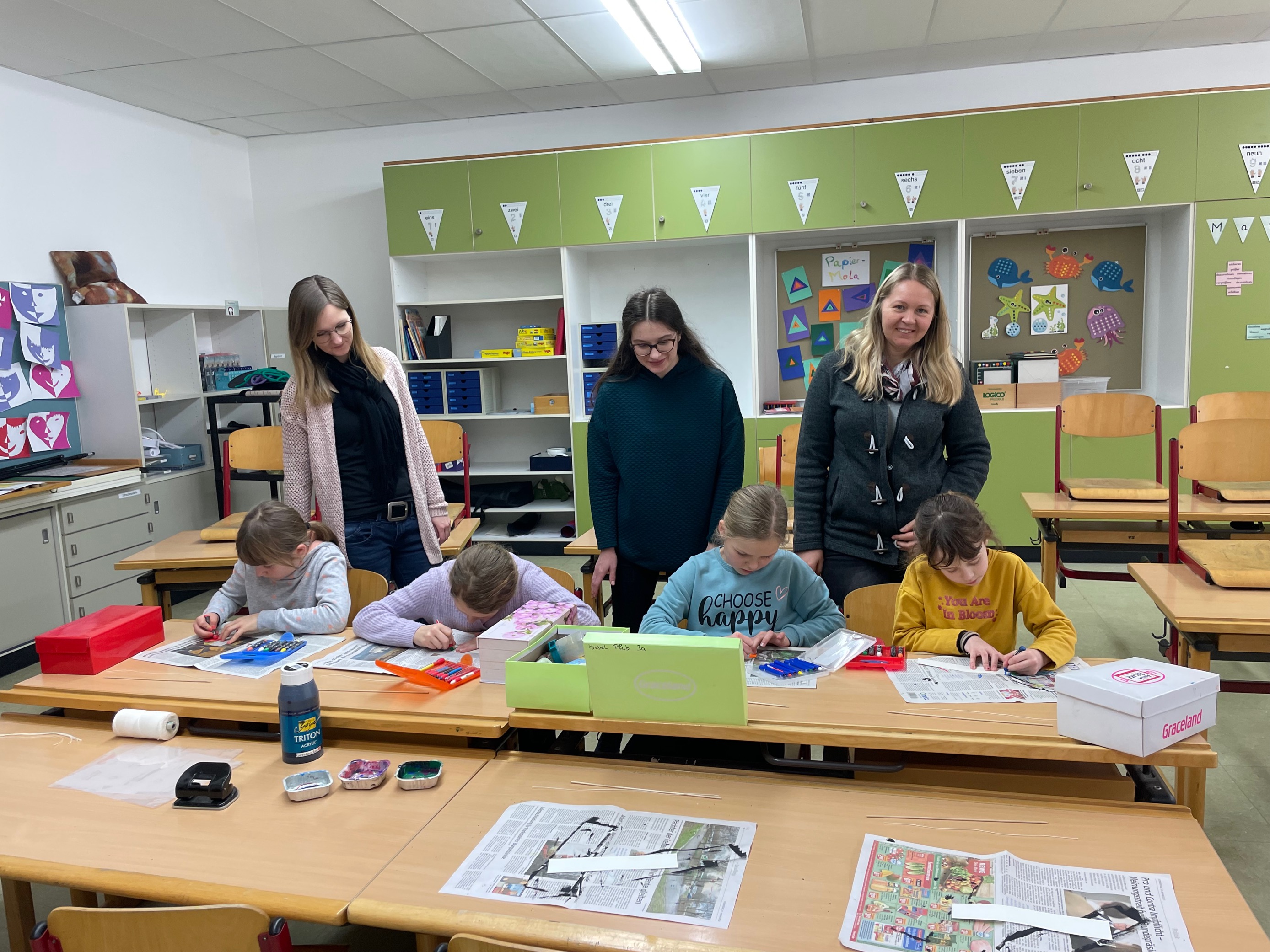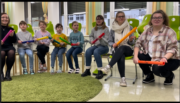 Unter dem Motto „Fasching“ führten sie vier unterschiedliche Workshops mit den Schulkindern durch. In der Gruppe der Musikpädagogik brachten die Studierenden den Grundschüler*innen bei, mit Boomwhackern zu spielen. Gemeinsam übten Sie das Lied „Hakuna Matata“ ein. Ein weiterer Workshop lief unter dem Thema „Backen“. Hier entstanden Faschings-Donuts, welche die Kinder von der Zubereitung des Teigs, bis zur Verzierung am Ende selbst mitbacken durften. Außerdem wurde gemeinsam ein „Gemüse-Clown“ gezaubert. Ein herzlicher Dank gilt an dieser Stelle dem Bioladen „Eseo“, welcher Lebensmittel im Wert von über 60 Euro spendete. Im Bereich der Kunstpädagogik gestalteten die angehenden Erzieherinnen Lesezeichen mit einer Kratztechnik, wofür Wachsmalkreiden, Acrylfarben und viel Kreativität gefragt waren. Der vierte Workshop fand im Bereich des Lesens statt. Hier hatten sich die Studierenden auf das gemeinsame Lesen der Geschichte von „Pippi Langstrumpf“ spezialisiert und schlossen diese Runde mit einem Kreuzworträtsel ab. Am Ende des Vormittags wurden die Donuts, sowie die „Gemüse-Clowns“ als Buffet im Klassenzimmer aufgebaut und gemeinsam gegessen. Außerdem spielten die Studierenden mit der Klasse 3a noch ein Lied gemeinsam auf den Boomwhackern. Im Anschluss daran reflektierten sie mit Ihrer Lehrkraft Frau Habermeier die Projektdurchführung, wobei herausgearbeitet wurde, was gut gelaufen ist und wo in Zukunft Entwicklungspotential besteht.