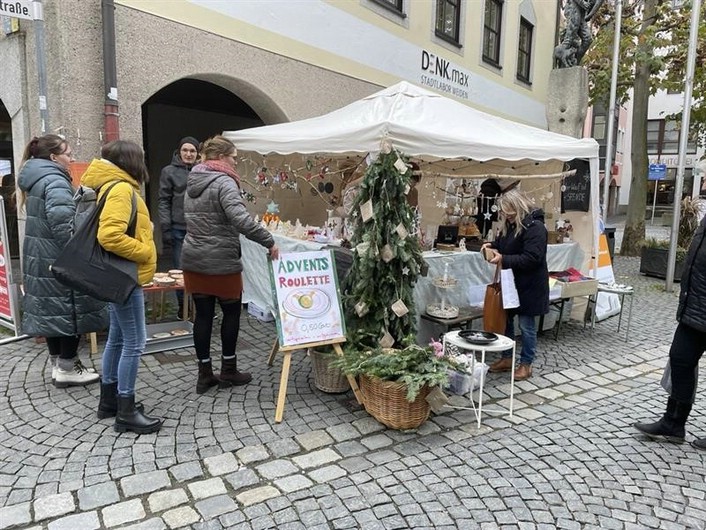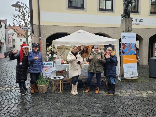 Das Staatliche Berufsschulzentrum Neustadt an der Waldnaab war ebenfalls mit einem Verkaufsstand am Christkindlmarkt in Weiden vertreten. Vor dem Denk.max Stadtlabor der OTH gab es an zwei Tagen allerlei Selbstgebasteltes und Gebackenes, hergestellt von Studierenden der Fachakademie zusammen mit Schülerinnen und Schüler der Berufsintegrationsklasse. Mit diesem Projekt unter der Leitung von Sabine Sailer und Irene Fritz gelang nicht nur in beeindruckender Weise eine kulturübergreifende Zusammenarbeit, an der Auszubildende aus bis zu zehn Nationen beteiligt waren. Die Besucherinnen und Besucher wurden außerdem gleich am Anfang des Christkindlmarkt-Areals in die richtige vorweihnachtliche Stimmung versetzt.