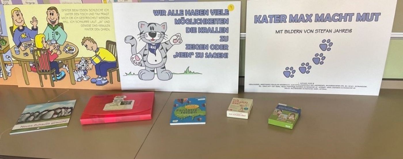 So wurde gemeinsam an einem praxisorientierten Ablaufplan für „Kater Max macht Mut“, einem Präventionsprojekt zum Thema „sexueller Missbrauch“, gearbeitet. Die Berufspraktikanten erstellten in Kleingruppenarbeit, unter Einbezug der 5-W-Fragen, Vorschläge zur Umsetzung des Projekts mit den Zielgruppen Kinderkrippe, Kindergarten und Jugendbereich in der Praxis und wissen nun, wie sie auf das nötige Material zugreifen und es verwenden können.