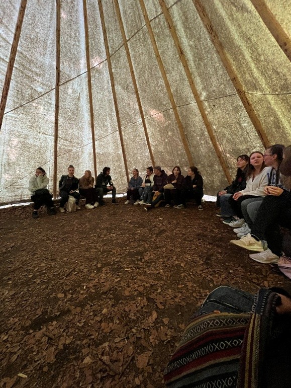 Im großen Tipi-Zelt erwartete uns ein „Wer bin ich?“-Spiel in Waldtier-Variante. Dabei wurde ein Tierbild auf dem Rücken befestigt, das es durch gezielte Fragen zu erraten galt – auch die Lehrkräfte machten mit. Anschließend folgte ein Bewegungsspiel („Fuchs und Hase“), bei dem Reaktionsvermögen und Teamgeist gefragt waren.
