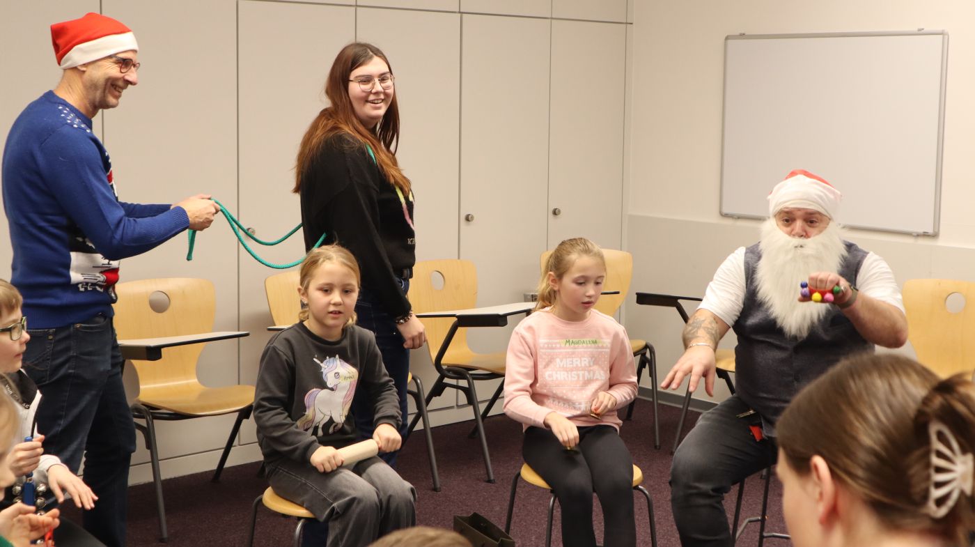 Zum Ende versammelten sich die Eltern erneut in der Aula. Dort präsentierten die jungen Wichtel stolz das eingeübte Weihnachtslied – ein fröhlicher Abschluss, der für viele Lacher und Applaus sorgte.