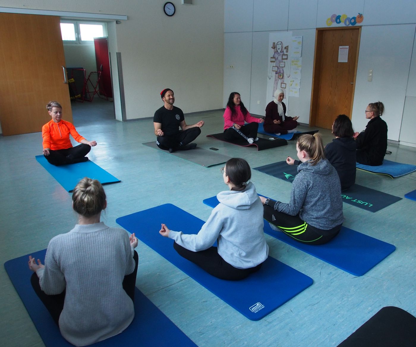 Yoga für junge Menschen und Studierende im erzieherischen Bereich war der Wunsch der Studierenden und das Ziel von Birgit Regner (Bewegungspädagogik), die dazu Personaltrainer Christopher Oellerich eingeladen hat . Für die Schülerinnen der Klasse PFG hieß es das „Yogieren“ zu entdecken und zu entspannen.