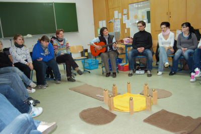 Im Rahmen des Religionspädagogischen Unterrichts wurden die 11. Klassen der BFS Kinderpflege mit dem Arbeiten mit „Kett-Materialien“ vertraut gemacht. Jeweils an einem Nachmittag wurden die Schüler der Klassen K11a und K11b, auf Einladung ihrer Religionslehrerin Frau Elke Kusche von Frau Theresia Förster vom Kindergarten St. Franziskus in Störnstein zunächst über Franz Kett, dem Mitbegründer der Religions-pädagogischen Praxis, die auch als „Kett-Methode“ bezeichnet wird, informiert.