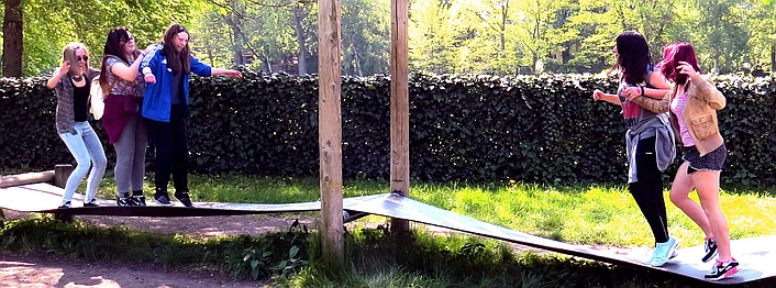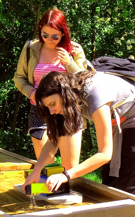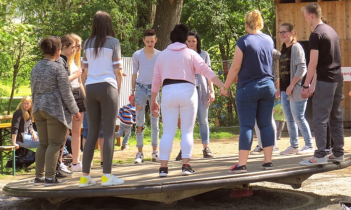 Es machte den Teilnehmern auch sichtlich Spaß, die eine oder andere Gruppe von Kindergartenkindern auf dem Erfahrungsfeld zu beobachten, die sich ganz und gar konzentriert und mit Feuereifer den einzelnen Stationen widmeten. Das berührte natürlich unsere angehenden Kinderpfleger/-innen besonders. Aber auch selbst wieder ein Stück weit kindliche Begeisterung und Leichtigkeit in sich zu entdecken, bedeutete ein tolles Erlebnis.