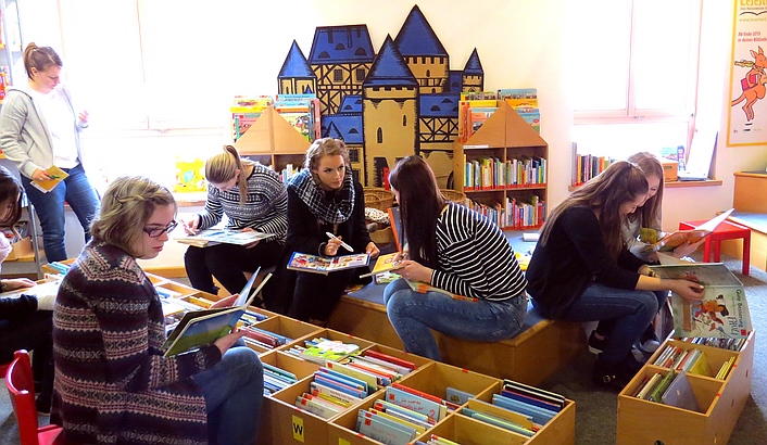 Kinderpfleger erlernen in der Regionalbibliothek die "professionelle Recherche". |