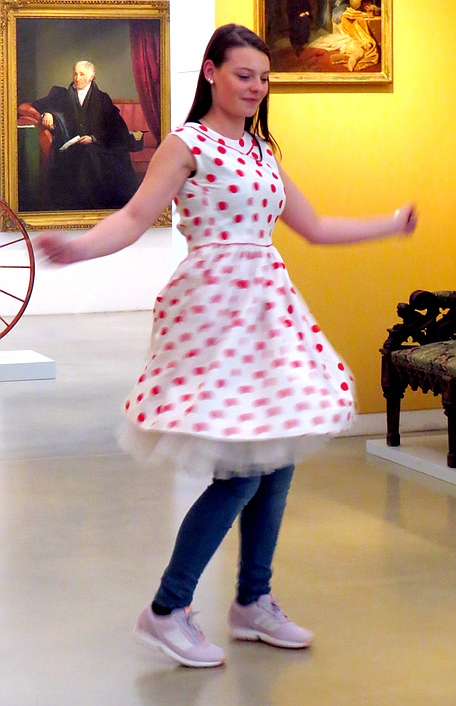 Den Höhepunkt der Tages stellte allerdings eine kleine „Modenschau“ dar, bei der die Gäste im Anschluss Gelegenheit hatten, einige historische Kostüme selbst anzuprobieren und ihren Mitschülern in einem würdigen Rahmen, nämlich der Gemäldegalerie, zu präsentieren.