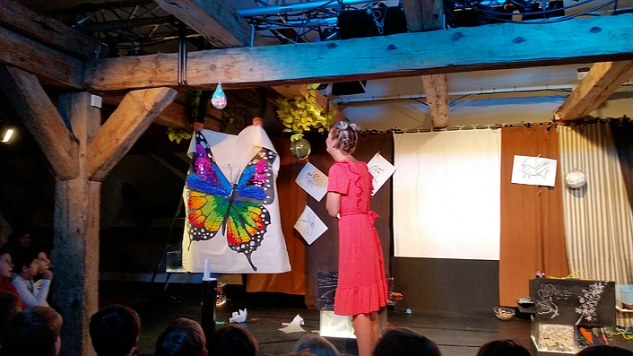 Die K11a besuchte gemeinsam mit den Lehrkräften Frau Morka und Herrn Stadler, der diese Veranstaltung mit Frau Weber-Zacher initiiert hatte, das Kinderstück nach dem gleichnamigen Bilderbuch von Gioconda Belli und Wolf Erlbruch. Eine phantasievolle und poetische Geschichte über den Reichtum der Natur und die Kunst, sie mit anderen Augen zu sehen. Doris Hofmann und Barbara Trottmann überzeugten mit ihrer Darstellung die K11a.
