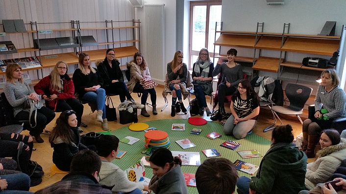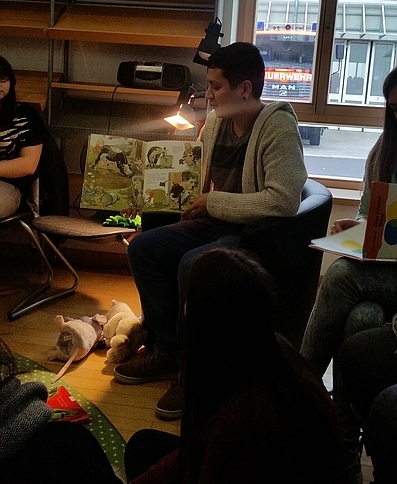 Nach einem intensiven Austausch über die Methodik der Bilderbucherarbeitung hatten die Schüler der K11a die Möglichkeit selbst zu üben. Einige der Schüler ließen sich diese Chance nicht entgehen.