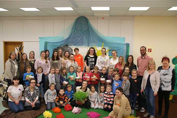Bei Sonnenschein erwarteten die Schülerinnen der Klasse K 10a am Freitag, den 29.03.2019 die Vorschulkinder der Kita St. Joseph aus Neustadt an der Waldnaab. Die 22 Kindergartenkinder und die Erzieherinnen besuchten an diesem Tag zum zweiten Mal das BSZ, um musikalisch den Frühling zu begrüßen.