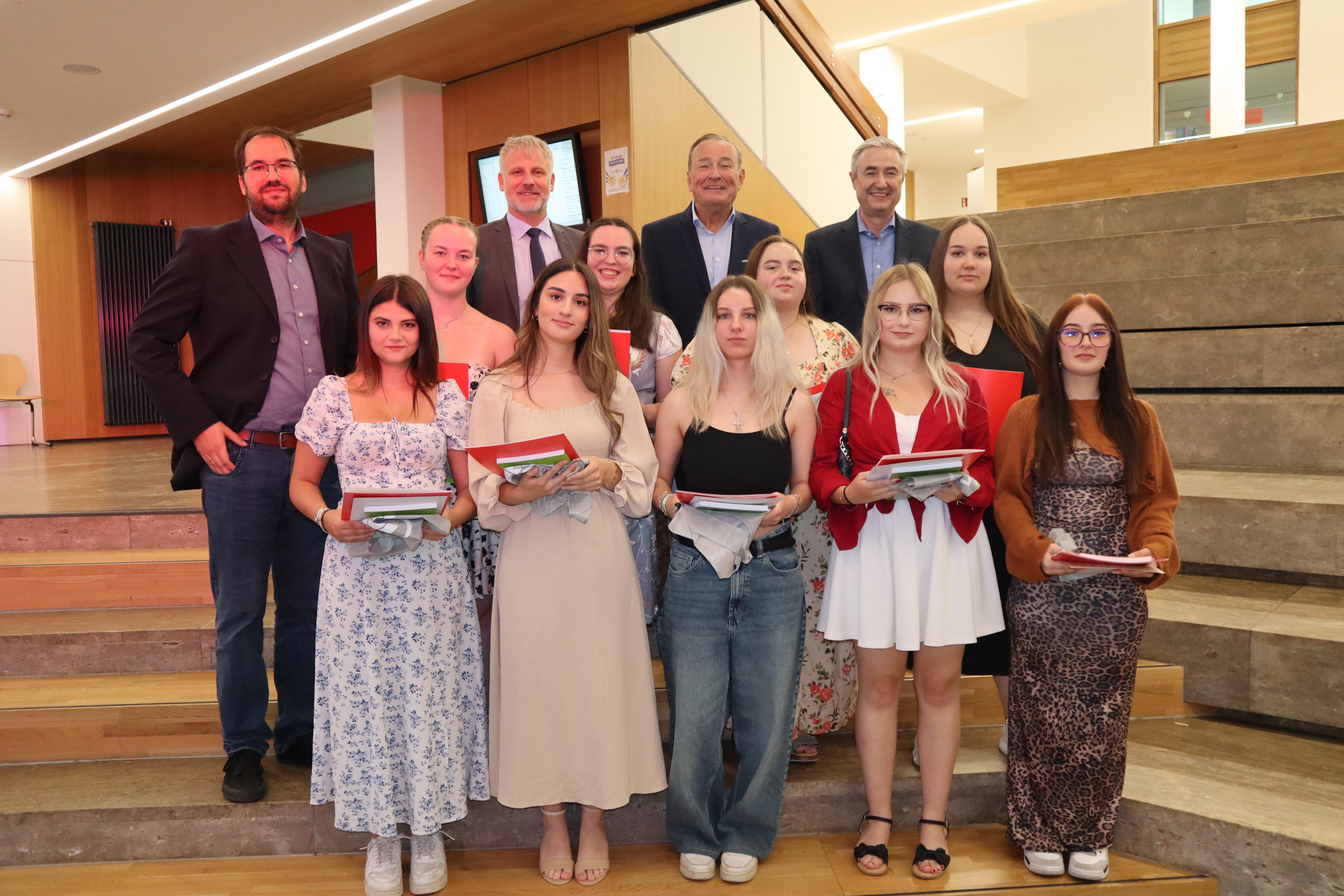 Am Dienstag luden die Berufsfachschulen für Ernährung und Versorgung, Kinderpflege und Sozialpflege zur Abschlussfeier in die vollbesetzte Aula des Gymnasiums Neustadt a.d. Waldnaab. Über 60 Abschlussschülerinnen und Abschlussschüler erhielten Ihren Berufsabschluss als staatlich geprüfte Helfer/ Helferin in der Ernährung und Versorgung, Kinderpfleger/ Kinderpflegerin oder Sozialbetreuer/ Sozialbetreuerin bzw. Pflegefachhelfer/ Pflegefachhelferin. Sie alle werden im Sozial- und Dienstleistungsbereich im Berufsleben für die Gesellschaft wertvolle Arbeit leisten, ein Teil wird sich durch eine weitere Ausbildung, z.B. in der Fachakademie für Sozialpädagogik, höher qualifizieren. Unter die Absolventinnen und Absolventen reihten sich auch 12 externe Bewerberinnen und Bewerber, die im Fachbereich Kinderpflege die Ausbildung zur/ zum staatlich anerkannten Kinderpfleger/ Kinderpflegerin meisterten.