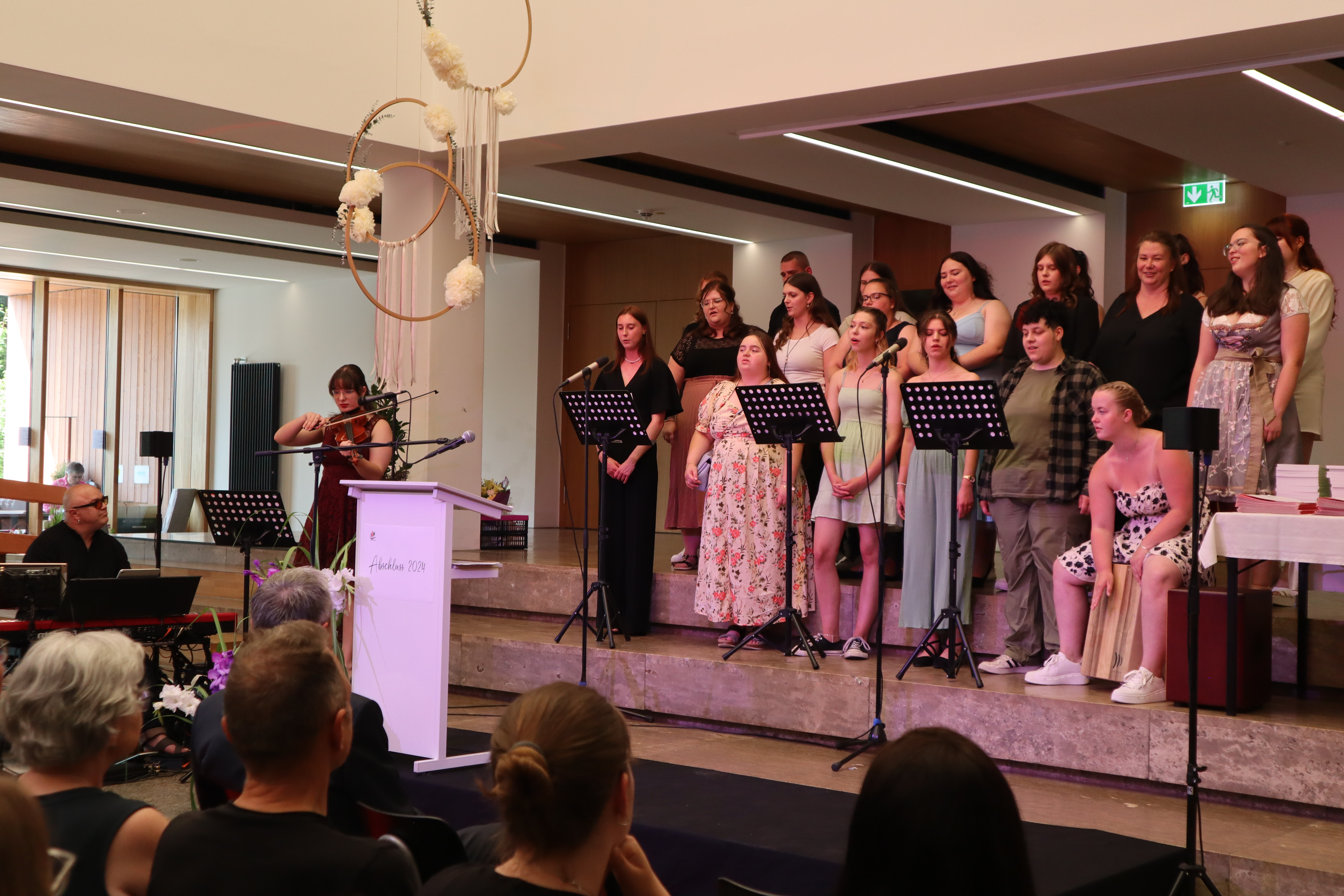 Für die musikalische Umrahmung sorgte der Fachbereich Kinderpflege: Ob bei “Viva la Vida” oder “We are the World” – Gesang und Instrumentalbegleitung gaben der Feier einen würdigen Rahmen. Sie sorgte für freudige Stimmung, aber auch für die ein oder andere Abschiedsträne.