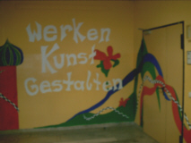 Schüler der 10. Klassen des Fachbereichs Kinderpflege gestalten den Kellergang nach F. Hundertwasser