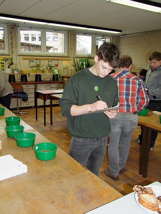 Neben Fragen zum Allgemein- und Fachwissen waren auch praktische Fähigkeiten (Stecker zusammenbauen, Sämereien und Futtermittel bestimmen) gefragt, schließlich mussten die Teilnehmer in einem Kurzvortrag ihren Ausbildungsbetrieb präsentieren.