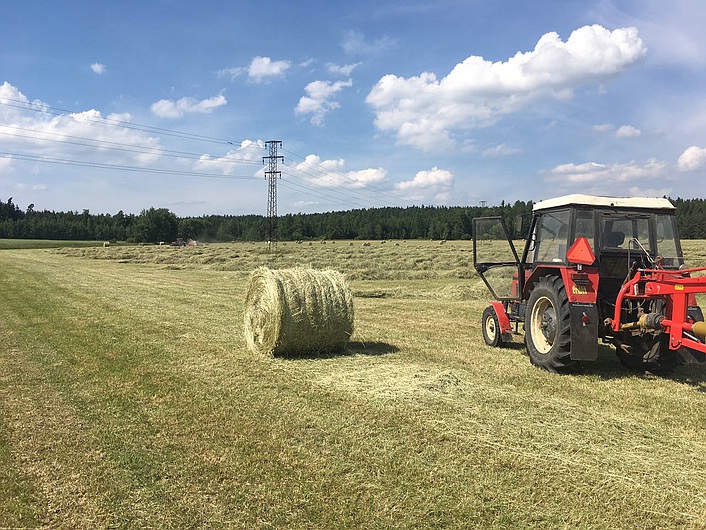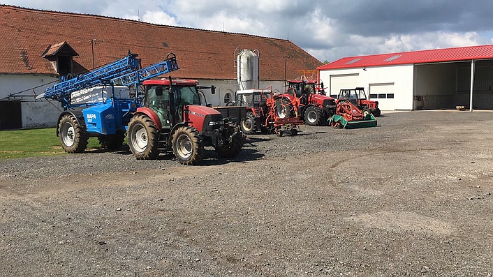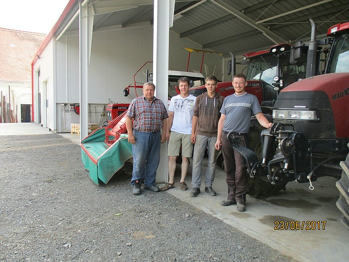 Anschließend wurde Christopher vom tschechischen Praktikumsgeber, Herrn Lukas Janko, abgeholt. Da Christopher auch auf dem elterlichen Betrieb in Pichlberg große Maschinen bedienen musste und die landwirtschaftlichen Arbeiten kannte, wurde er schnell in den Betriebsablauf integriert. Herr Janko war voll des Lobes über den fachlich sehr belastbaren Praktikanten, der vieles über die Organisation eines weit größeren Betriebes lernte. So liegt der Schwerpunkt der meisten tschechischen Betriebe auf dem Ackerbau, die Veredelung wird nur in Ansätzen genutzt. Grenzflächen unterliegen meist nur einer extensiven Weide- oder Mähnutzung.