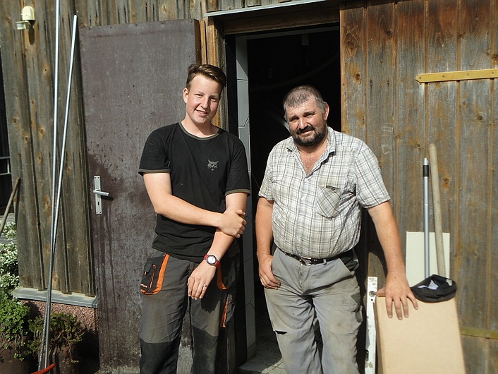 Petr Vanicek und Klaus Grünbauer beim Einbau eines neuen Milchtanks. Das vielseitige Arbeitsprogramm faszinierte den jungen Mann.