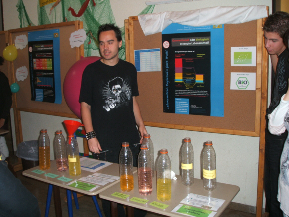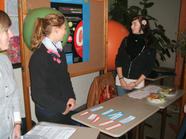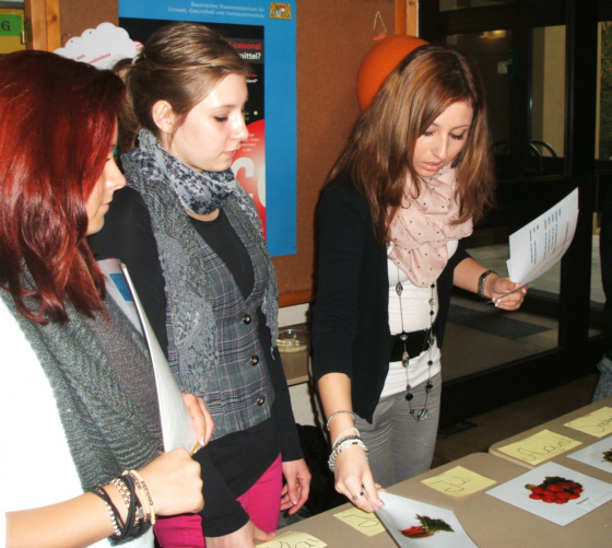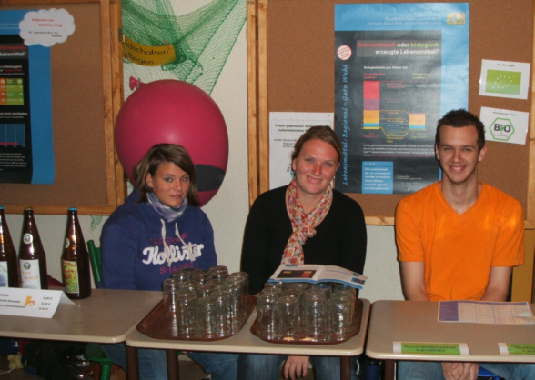 ![]() | In den Mittelpunkt der Ausstellung stellten die Schüler der K 11a und b auch den Apfel - ein einheimisches Obst: Bei einem Geschmackstest konnten die Mitschüler ihren Favoriten bestimmen. |